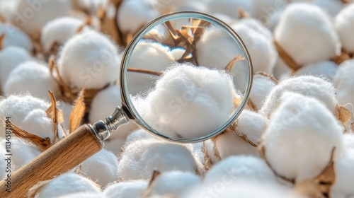 Magnifying Glass Focus on Cotton Bolls in Field Setting