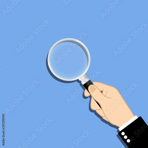 Magnifying glass in hand icon flat on isolated background. EPS 10 vector