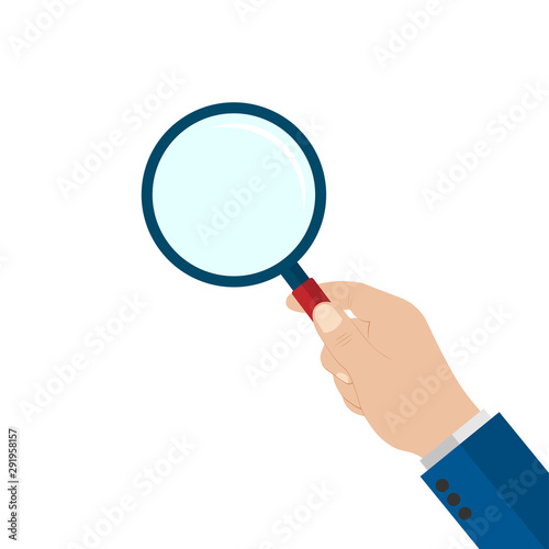 Magnifying glass in hand. Stock Vector Illustration.isolated on white background.10 eps.