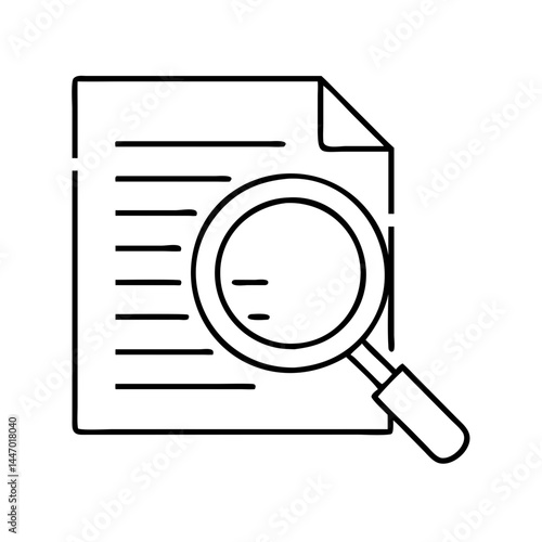 magnifying glass over document icon, magnifying glass over document line art - simple line art of magnifying glass over document, perfect for magnifying glass over document logos and icons