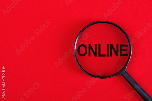 Magnifying glass with the inscription ONLINE on a red background.