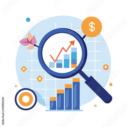 magnifying-glass-highlights-business-growth-chart vector image on white background