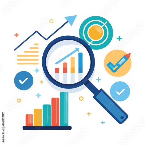 magnifying-glass-highlights-business-growth-chart vector image on white background