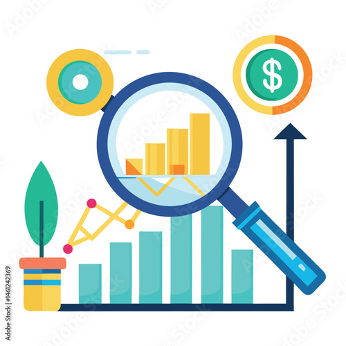 magnifying-glass-highlights-business-growth-chart vector image on white background