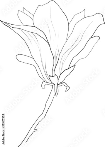 Magnolia linear sketch, minimalistic floral clipart, botanical illustration