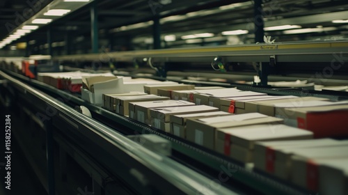 Mail sorting facility with automated machinery efficiently processing and organizing large volumes of mail, showcasing the importance of technology in modern logistics and postal services.