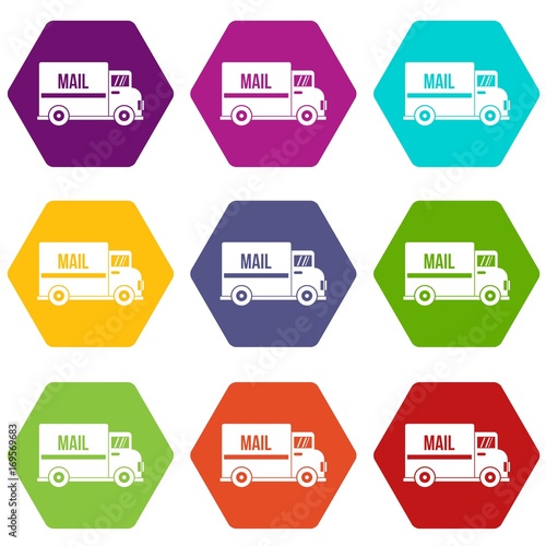 Mail truck icon set color hexahedron