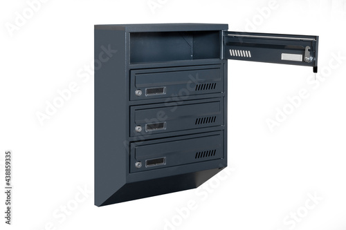 Mailboxes in the condo. metal mailbox with lockable center in condo. Mailbox on the white background isolated