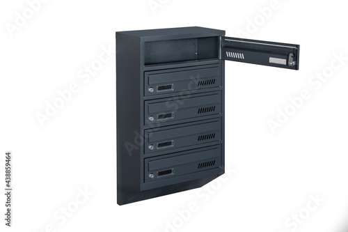 Mailboxes in the condo. metal mailbox with lockable center in condo. Mailbox on the white background isolated