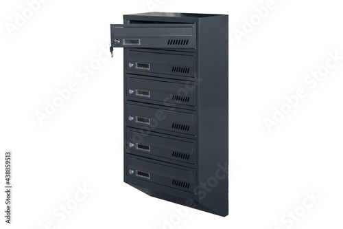 Mailboxes in the condo. metal mailbox with lockable center in condo. Mailbox on the white background isolated