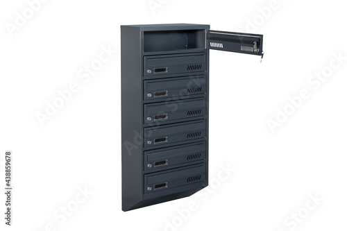 Mailboxes in the condo. metal mailbox with lockable center in condo. Mailbox on the white background isolated