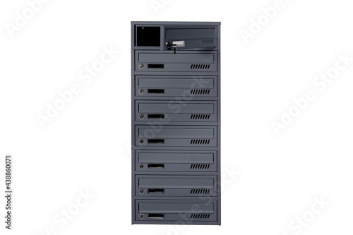 Mailboxes in the condo. metal mailbox with lockable center in condo. Mailbox on the white background isolated