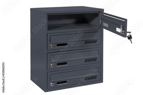 Mailboxes in the condo. metal mailbox with lockable center in condo. Mailbox on the white background isolated