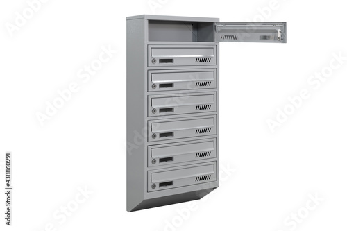 Mailboxes in the condo. metal mailbox with lockable center in condo. Mailbox on the white background isolated