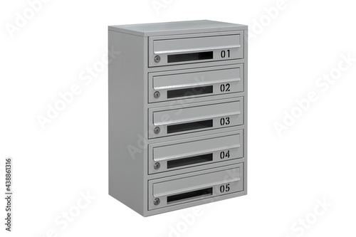 Mailboxes in the condo. metal mailbox with lockable center in condo. Mailbox on the white background isolated