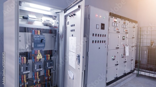 Main breaker on the distribution panel control,Electrical switch gear at Low Voltage power control center cabinet in coal power plant.