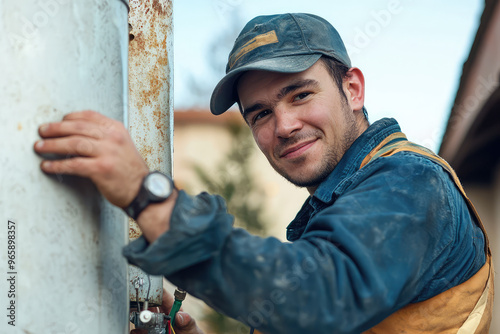 Maintenance worker repairing broken water heater, showcasing skill and dedication. worker is focused and determined, ensuring everything functions properly