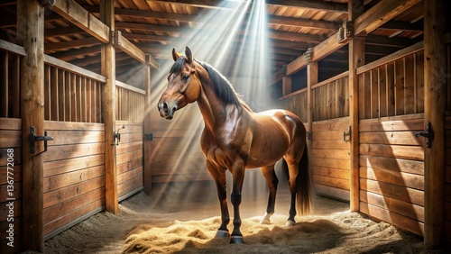 Majestic Brown Horse Resting in Rustic Stable - High-Resolution Stock Photo