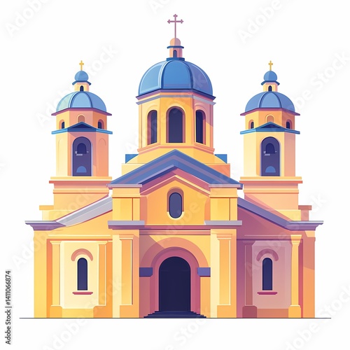 Majestic Cathedral Architecture. Explore Iconic Christian Church Building with Ornate Domes and Tower in a Sunny Urban Landscape