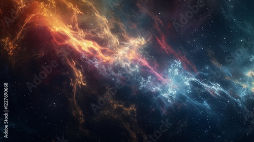Majestic cosmic stream of golden and blue energy 3d rendering image. Energetic flow. Universe galactic background wallpaper colorful realistic. Deep space phenomenon concept idea