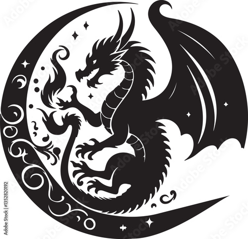 Majestic Dragon in Flight - Mythical Creature Vector Illustration