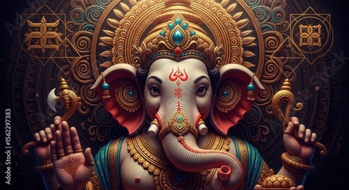 Majestic Elephant Deity Adorned in Ornate Golden Regalia