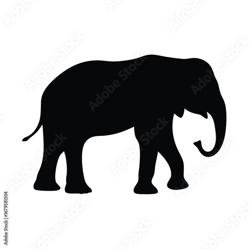 Majestic elephant silhouette walking on white background, creating a captivating contrast