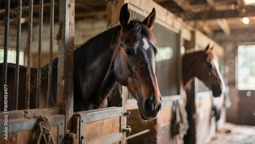 Majestic equine portraits showcasing the serene beauty within a rustic stable environment