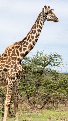 Majestic Giraffe Standing Tall in Its Natural Habitat Amidst Its Beautiful Surroundings Serengeti Tanzania Africa