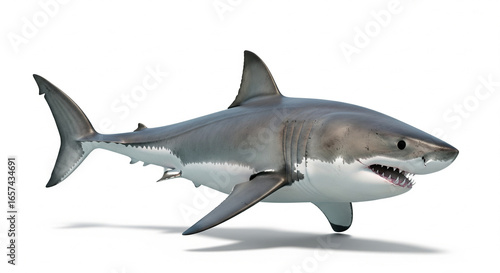 Majestic Great White Shark Swimming Aggressive Ocean Predator on an Isolated transparent background.