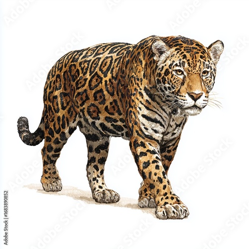 Majestic Jaguar in a Striking Illustration , PNG isolated cut out image