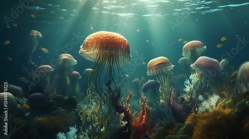 Majestic jellyfish floating in deep ocean high resolution images