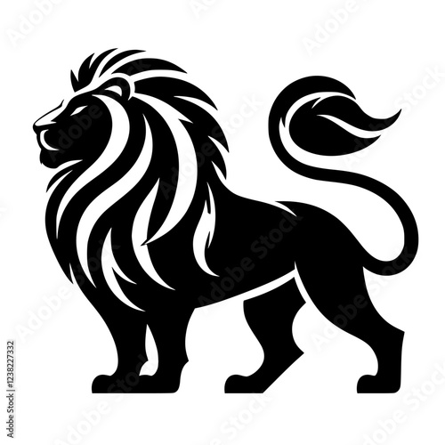 Majestic Lion: A Black and White Vector Graphic Design. Perfect for logos, icons, and any design project needing a powerful symbol of strength and royalty.