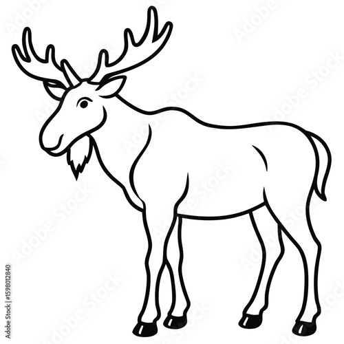 Majestic Moose in Line Art: A regal moose, rendered in elegant line art, stands proudly, its impressive antlers a testament to its wild majesty.