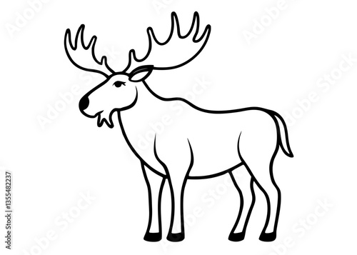 Majestic Moose Outline: A bold outline illustration captures the imposing presence of a moose, showcasing its distinctive antlers and robust build.