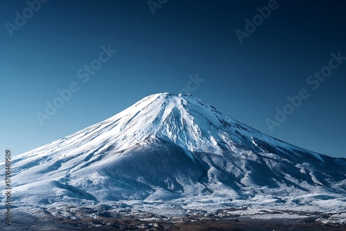 Majestic Mount Fuji covered in fresh snow against a stunning clear blue sky, a symbol of resilience and natural beauty in Japan, perfect for travel inspiration