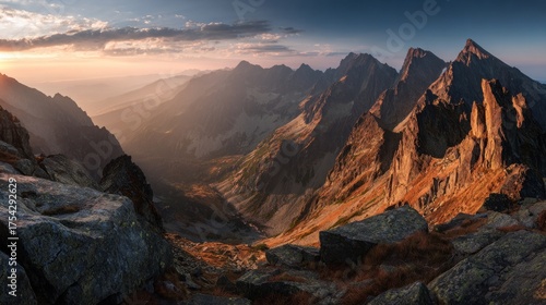 Majestic mountain range at sunset dramatic sky landscape scenic view