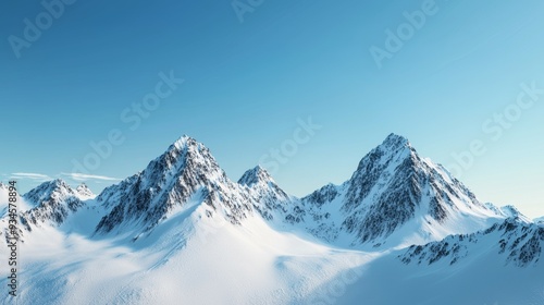 Majestic mountain range with snow-capped peaks and clear blue sky above. Majestic Mountain Range