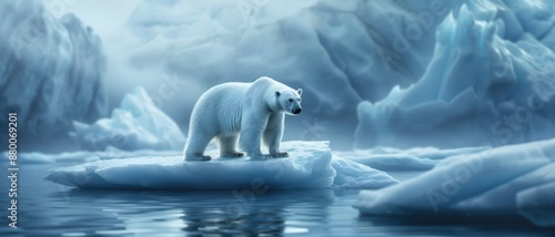 Majestic Polar Bear Standing on Iceberg in Arctic Waters with Glacial Background