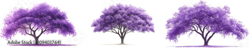 Majestic purple Japanese tree with big leaves, vector illustration on white background,