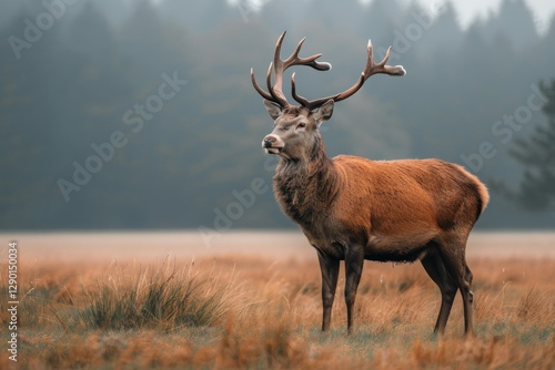 Majestic Red Deer Buck in the Fog