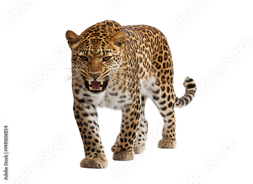 Majestic spotted feline predator, Panthera pardus, a wild leopard portrait isolated against a transparent background