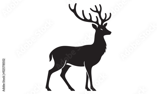 Majestic Stag Silhouette: Side Profile, Black and White, Isolated on White Background. Camera Position: Side, Effect: Silhouette, Background: White.