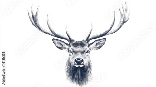 Majestic stag with impressive antlers illustrated from the front, perfect for nature-themed designs on a white background.