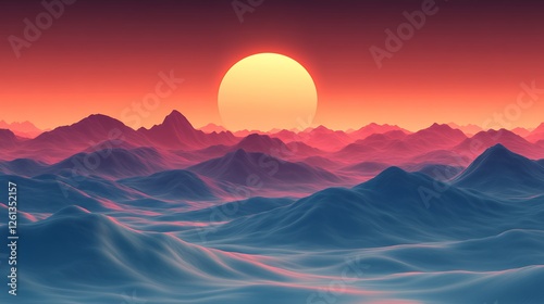 Majestic Sunset Over Rolling Mountains With Vibrant Colors Illuminating the Sky at Dusk
