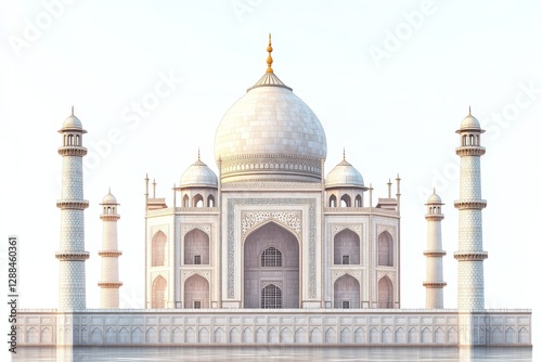 Majestic Taj Mahal Iconic Indian Mughal Architecture Isolated on White Background