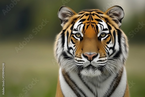 Majestic tiger portrait showcasing striking features in natural habitat during daylight hours