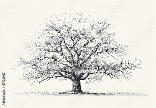 Majestic tree silhouette drawing with sprawling branches, intricate sketch detail
