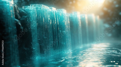 Majestic waterfall cascading over rugged cliffs surrounded by lush verdant foliage and misty atmosphere creating a serene and powerful natural spectacle