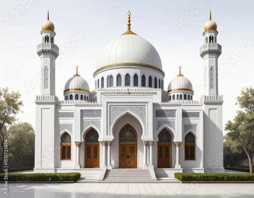 Majestic White Mosque Architectural Design Exterior View Islamic Religious Building